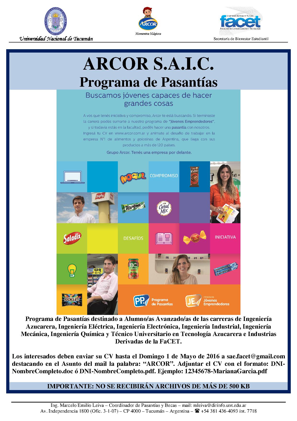 Aviso – Programa Pasantias – ARCOR Publicado el 27 abril, 201627 abril, 2016 por fdiaz ← Anterior Siguiente →