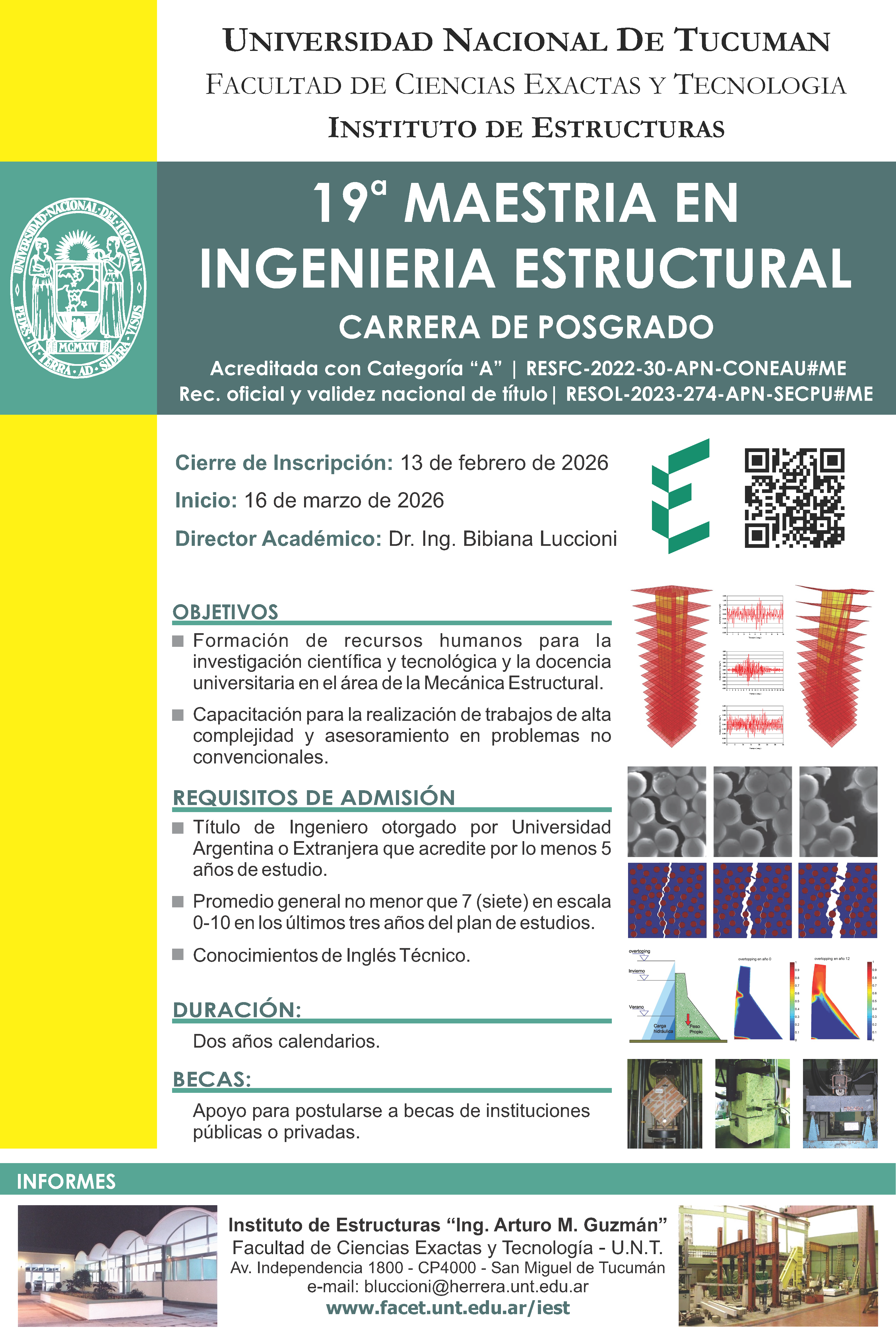 INSTITUTO DE ESTRUCTURAS “ING. ARTURO M. GUZMÁN”Facultad de Ciencias Exactas y Tecnología – Universidad Nacional de Tucumán Av. Independencia 1800 – San Miguel de Tucumán CP 4000- República Argentina