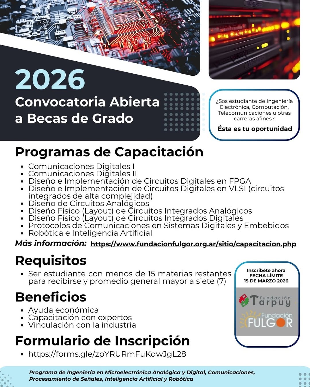 – Poseer título de grado o encontrarse cursando una carrera de grado avanzado o posgrado en áreas de la Ingeniería (Civil, Eléctrica, Electrónica, Informática, Mecánica, entre otras).