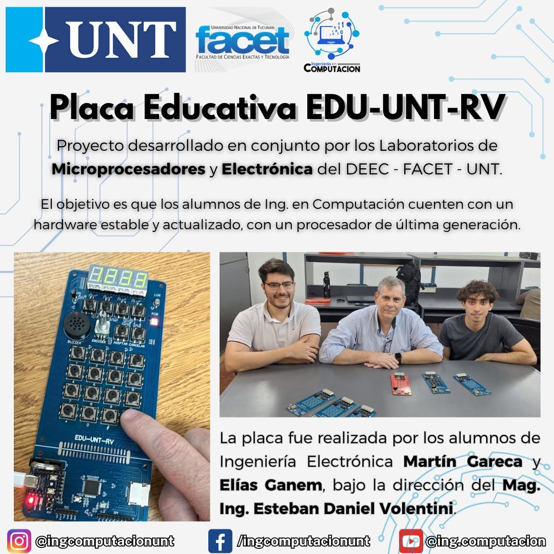 El Laboratorio de Microprocesadores de la FACET-UNT ha dado un paso significativo en la enseñanza de la ingeniería con el desarrollo y la puesta en marcha de su propia placa educativa, la EDU-UNT-RV. Este hardware especializado está diseñado para reforzar la formación de los estudiantes de la carrera de Ingeniería en Computación y utiliza la arquitectura abierta RISC-V, una tecnología que en los últimos 5 años está revolucionando el diseño de procesadores. El objetivo es que los alumnos cuenten con un hardware estable que funcione sin los problemas típicos de conexiones intermitentes de los protoboards.