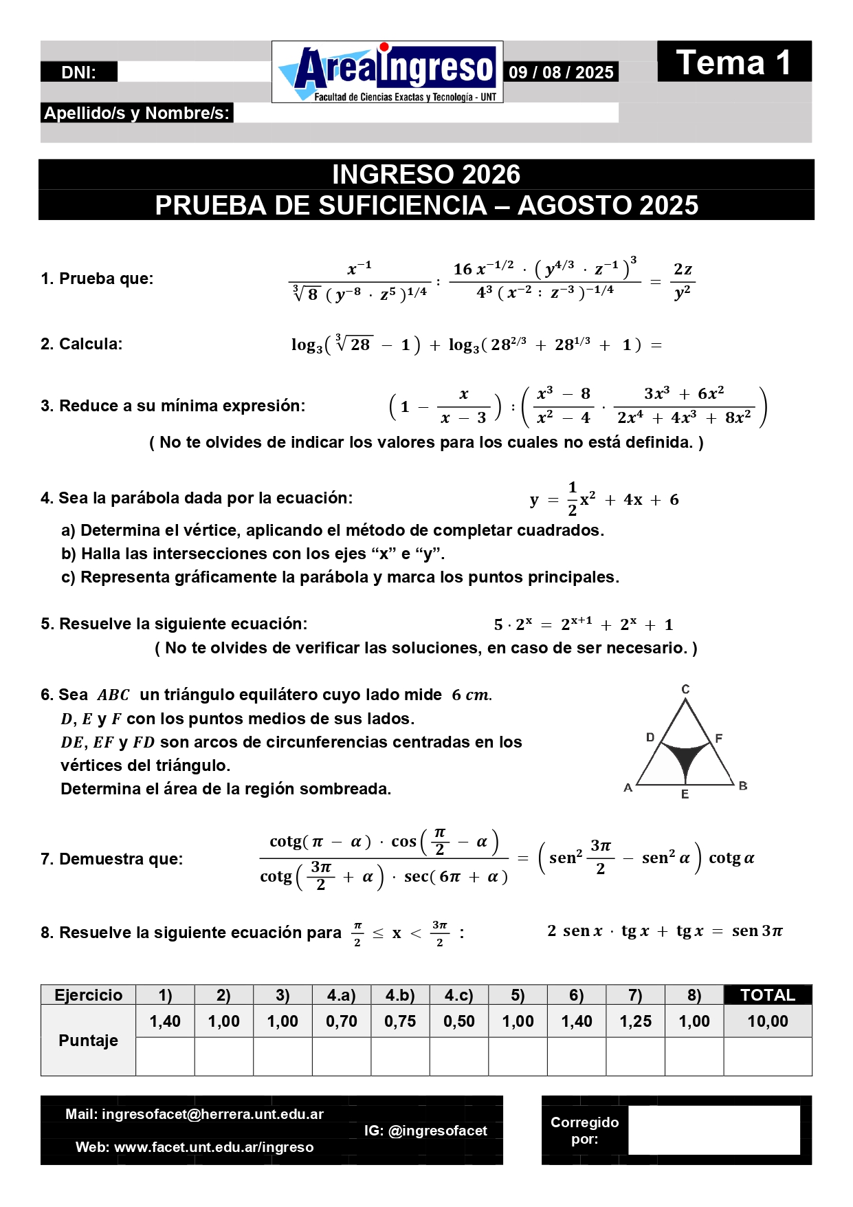 Si tenés alguna duda sobre las instancias del ingreso, envía mail a ingresofacet@herrera.unt.edu.ar