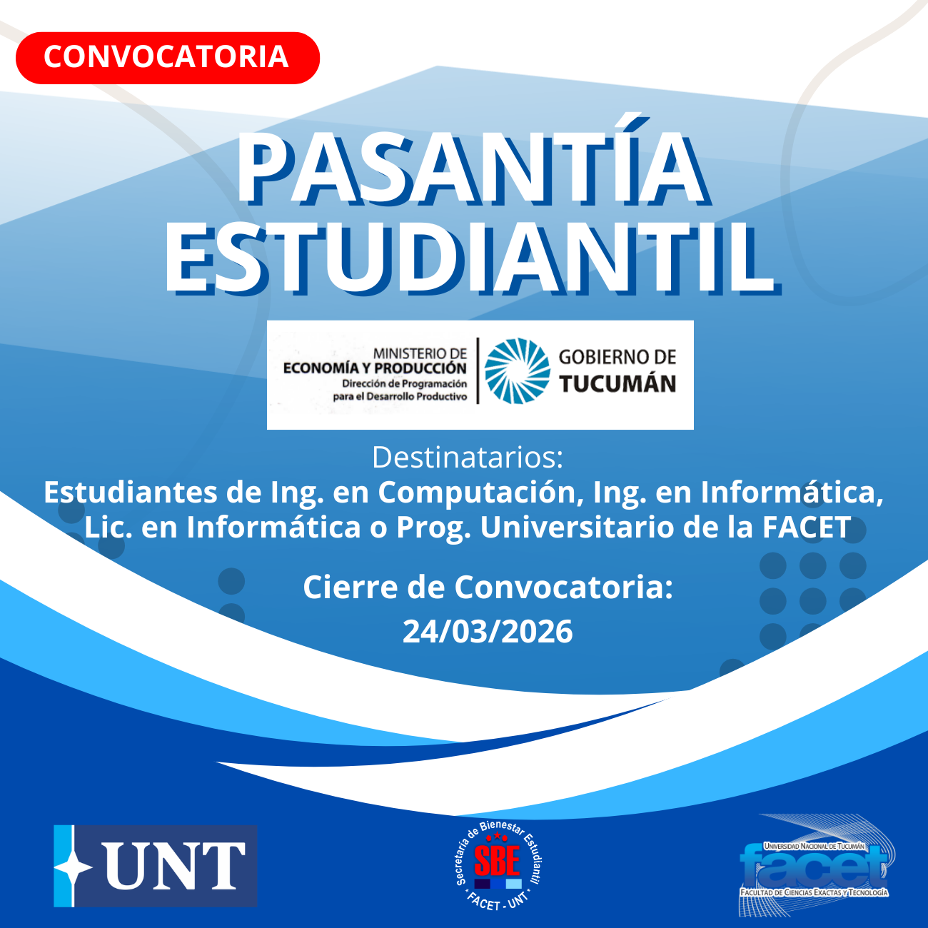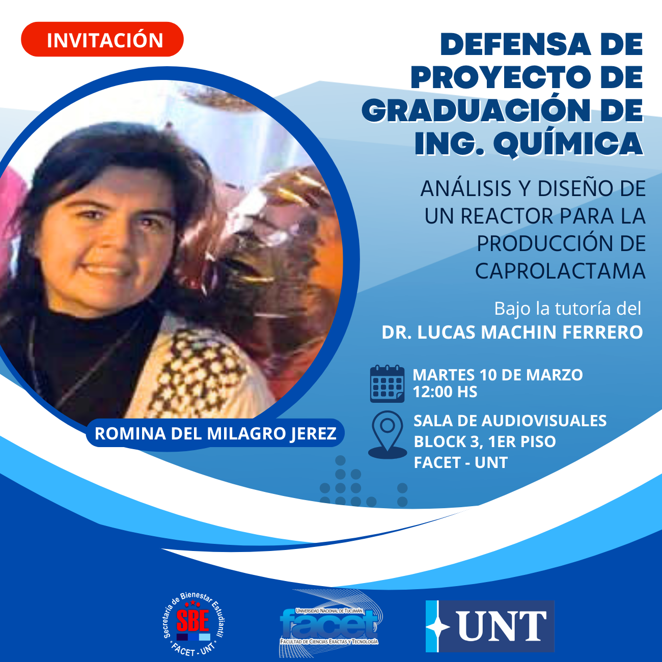 El acto académico se llevará a cabo el viernes 20 de marzo, a las 16:00 hs, en el Aula 4-0-12, Block 4, Planta Baja, FACET-UNT.